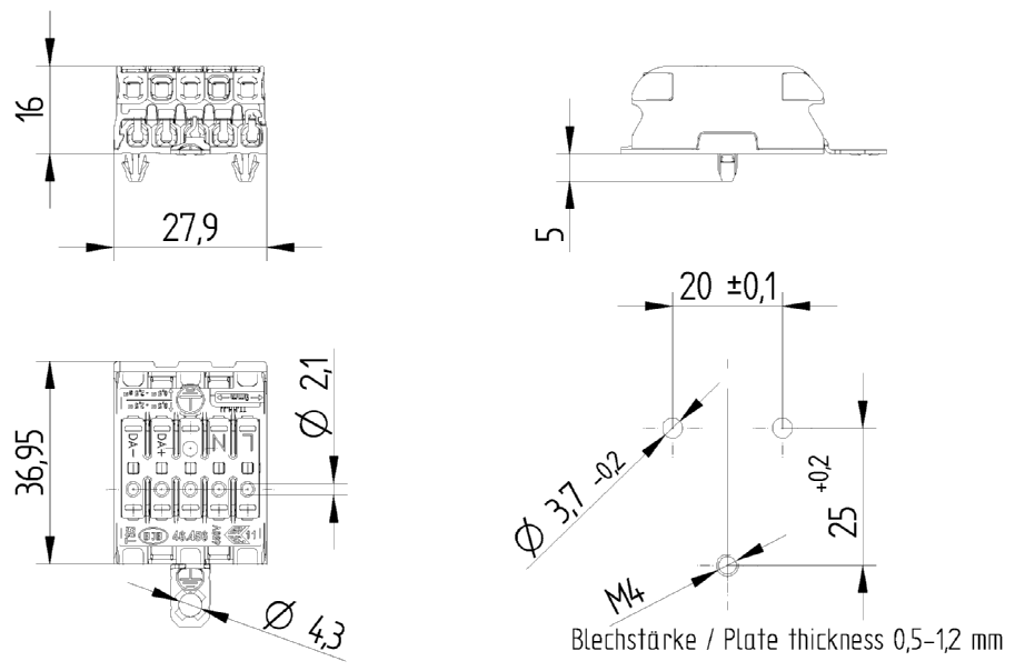 | Beschriftung: | L N ⏚ DA+ DA- |