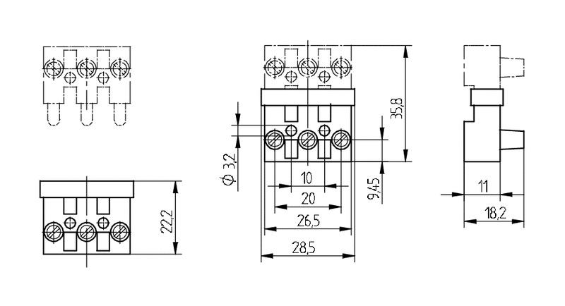 Nominal current: 16 A upto ambient temperature Tu = 85° C