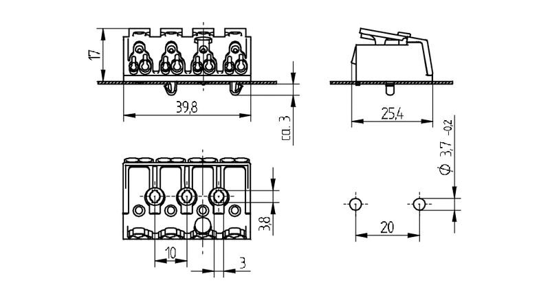 - c) Suppression capacitor: 1 x 0.5 - 0.75 mm², not releasable