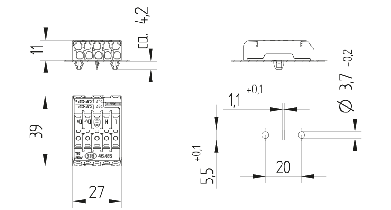 - BJBDE-6451604-v1-BJB_Datasheet_46_485_1118_50_flat_terminal_block_REC__Snap_in_pins_LNEZDA_DA-