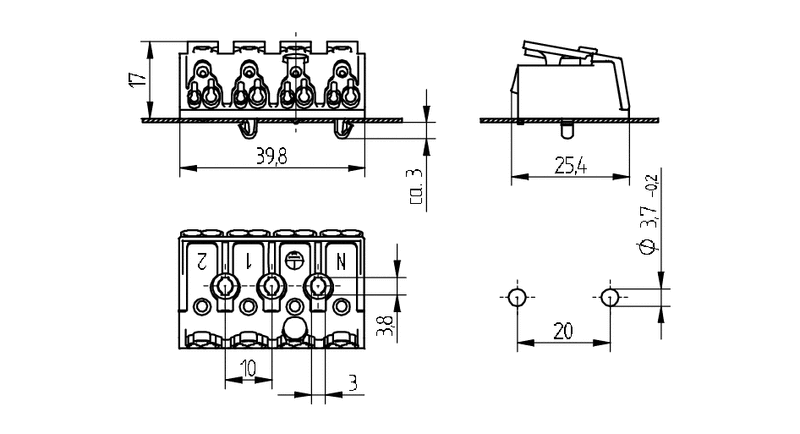 - c) Suppression capacitor: 1 x 0.5 - 0.75 mm², not releasable
