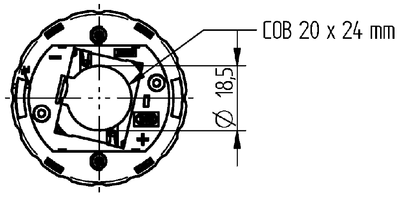 lampmodule top GH36d, D 50mm, with glascover, 2 optic interfaces analogous BJB 40 & 50 mm, COB 20 x 24, snap-in prefixing of COB