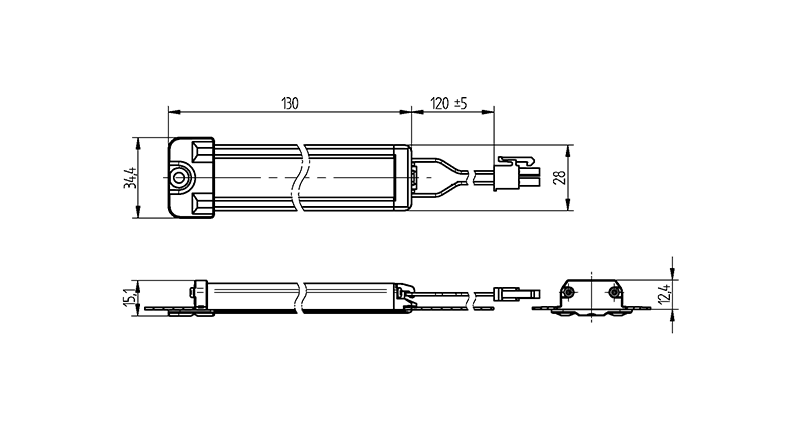 LED ovendoor lamp, Square - 120 x 25 mm, 120 mm wire length