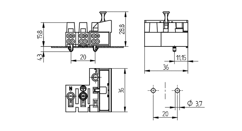 Nominal current: 6.3 A to ambient temperature Tu = 50° C