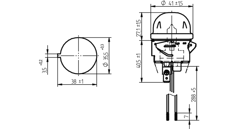 | Wires: | PTFE (max. 250° C), Lead length: 288 mm (11'') |