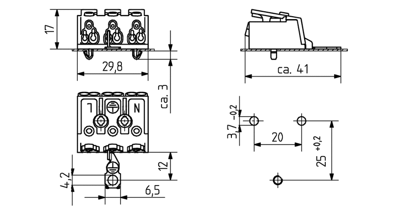 - b) 1 x 0.5 - 2,5 mm², releasable