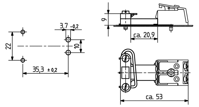 Screw fixing: for self-tapping screws ISO 1481 - ST 2.9 x 9.5 - C / - F