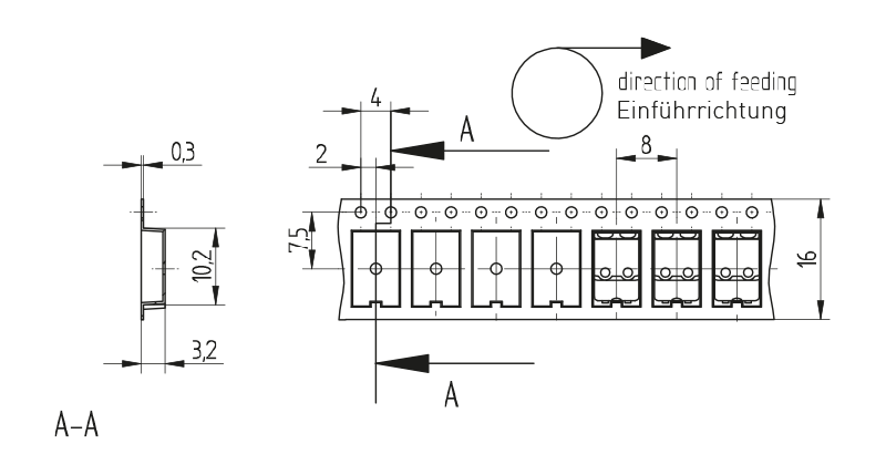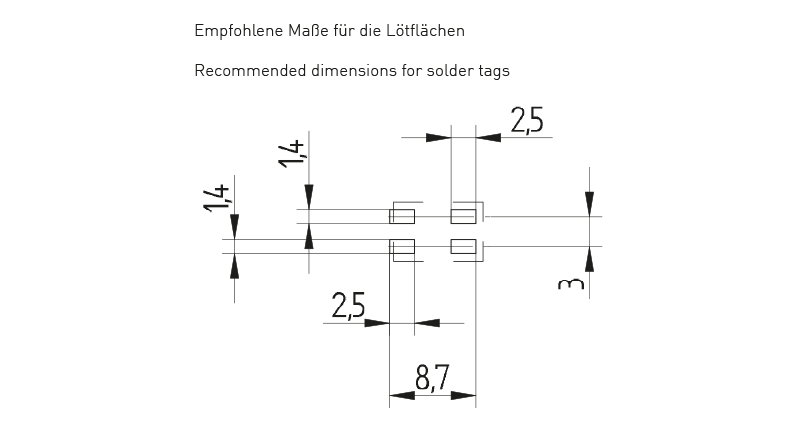 Suitable for leadfree-reflow-profiles according to DIN EN 61760-1 respective DIN EN 60068-2-58 up to peak-temperature of max. 260°C. Due to different application-specific parameters (component arrangement and alignment, soldering system, solder paste), it is recommended to use test runs to determine a suitable profile under production conditions. Depending on the SMD soldering process and associated parameters a minor discoloration might occur. However, this will not influence the functionality.