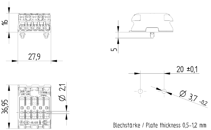 | mounting method 1: | Push-in mount with Snap-in pins |