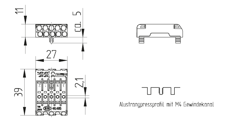Product information "Flat Terminal block 5 poles with snap-in pins Aluprofile 3NEZ12 and contact opening function"