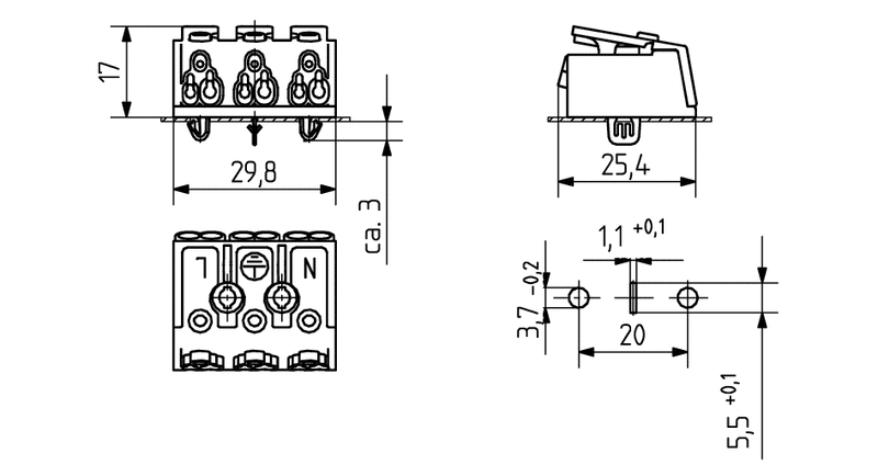 - b) 1 x 0.5 - 2,5 mm², releasable