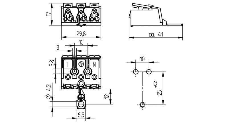 - b) 1 x 0.5 - 2,5 mm², releasable