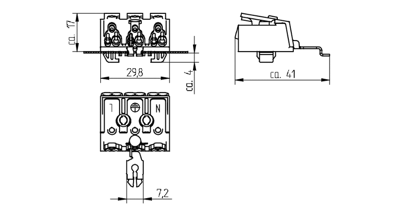 Internal wiring: only for solid conductors and 7 stranded wire ends