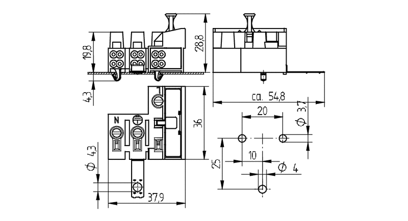 Nominal current: 6.3 A to ambient temperature Tu = 50° C