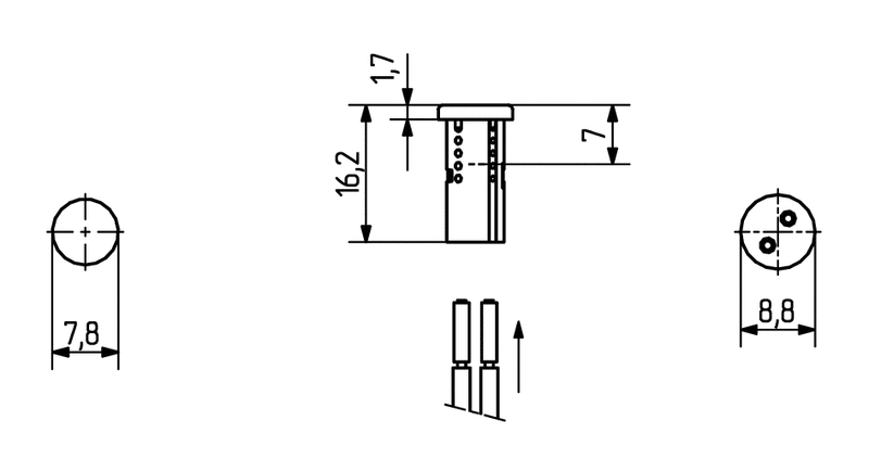 | mounting method 1: | Push through mount for cut out ø 7.8 mm |