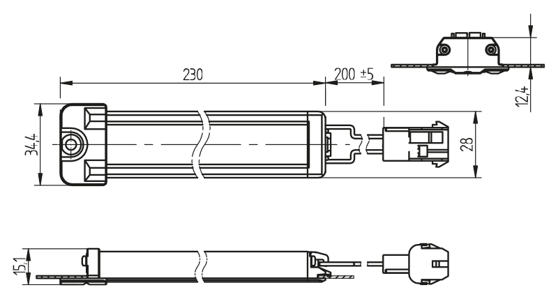 LED ovendoor lamp, Square - 220 x 25 mm, 200 mm wire length