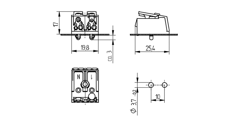 - c) Suppression capacitor: 1 x 0.5 - 0.75 mm², not releasable