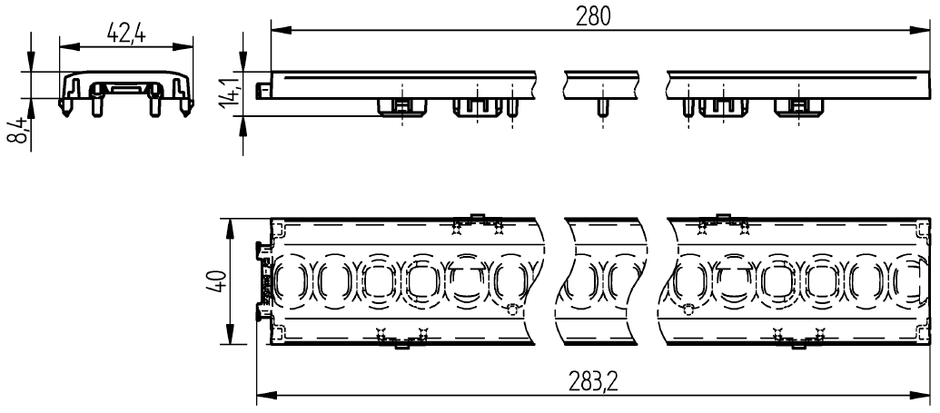 • Flexibility due to clip fastening suitable for luminaire sheets (0.5 - 1.0 mm) and aluminium profiles