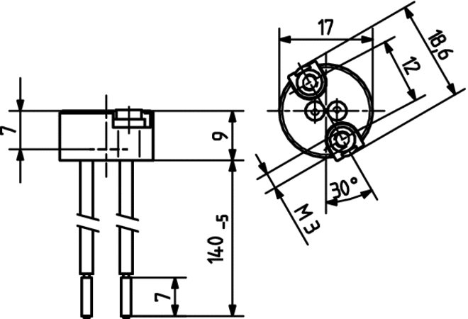 | Wires: | Cu, tin-plated, 0.75 mm², with ferrule, Insulation: silicone (max. 180° C), lead length: 140 mm |