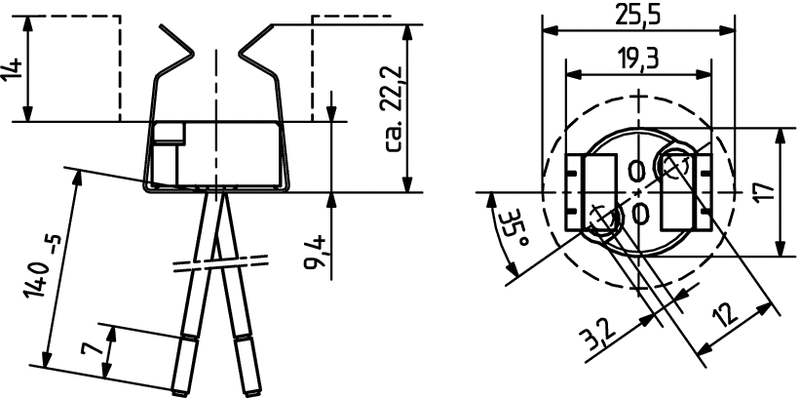 Die Leitungsverlegung muss so gewählt werden, dass keine Kräfte auf die Kontaktplatten ausgeübt werden (Abhebeln vom Lampenstift). Weitere Ausführungen auf Anfrage