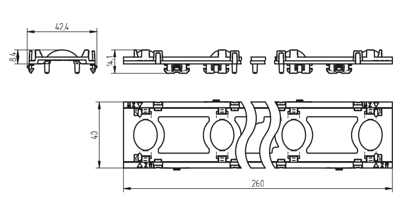 Die Optiken 35.306 (1ft) sind ausgelegt für den Einsatz mit Raster 35.306.2001 (1ft) und Raster 35.312.2001 (2ft). 1-Klick-Einclipsbefestigung für Leuchtenbleche und Aluminiumprofile Für Leuchtenblech: 0.5 - 1.0 mm • Homogene Farbdurchmischung (auch bei Tuneable White Anwendungen) Technische Details • Einclipsbefestigung für Leuchtenbleche und Aluminiumprofile • Zentrierstifte zur optimalen Ausrichtung von LED-Modul und Optik • Rasthaken zum Einclipsen von LED-Modul und Optik in einem Schritt • Integrierte Kabelhalter zur Leiterführung • 2 Leitungen pro Leitungshalter möglich • Zentrierzapfen zur Ausrichtung und Rasthaken zur Fixierung des Rasters (weitere Angaben zum Raster finden Sie auf Seite 3) Anwendungsbereich: Anwendungen, bei denen es auf optimales Licht und minimale Blendung ankommt Verp. 96 Gew. 23.2 g Artikel-Nr. 35.306.1003