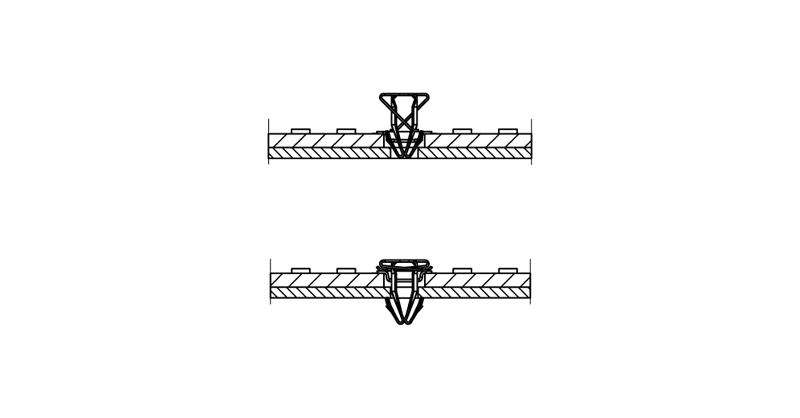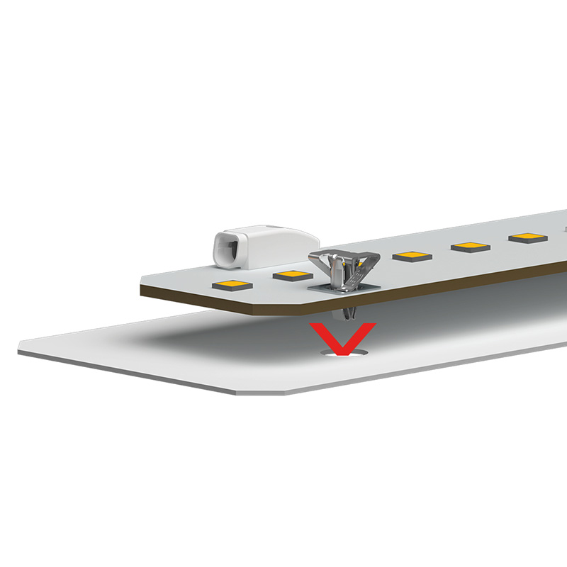 • Kein zusätzlicher Schraubensetzvorgang erforderlich • Dauerhafter und gleichbleibender Anpressdruck mit Anpresskraft: min. 5 N • Passend für standardisierte Lochbilder mit ø 4,5 mm im LED-Modul • Für Leuchtenblechausschnitt ø 3,0 +0,2 mm oder zum Einsatz in Aluminiumprofile mit Profillöchern • Zuverlässige Wärmeableitung durch konstanten Anpressdruck • Geeignet zur manuellen- und automatischen Endmontage • Automationslösung auf Anfrage • Sehr flaches Bauteil zur Vermeidung von Abschattungen • Alternative zur Schraubbefestigung => kein Drehmomentschrauber erforderlich • Schneller Montagevorgang erhöht die Produktivität und reduziert die Produktionskosten • Verpackung Tape and Reel: 12.600Stück / 18 Reels • Verhindert mögliche Beschädigung bei Schraub-befestigung durch geringe Einsteckkraft • Lösbare Verbindung