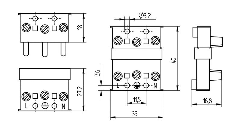 Nennquerschnitt: 1,5 mm²Nennstrom:16 A bis Umgebungstemperatur Tu = 85° CMit voreilendem Erdkontakt