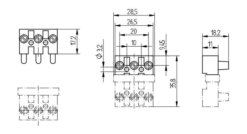 | Schraubklemmen: | ø 3,4 |