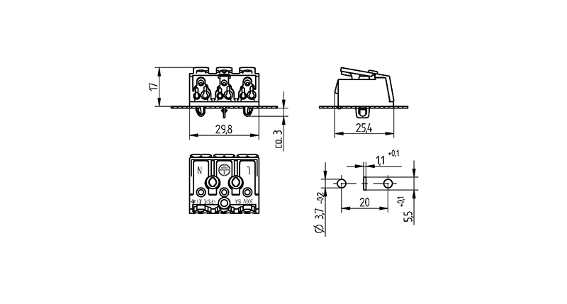 | Kontaktöffnung: | Mit integrierter Taste zur Kontaktöffnung extern |