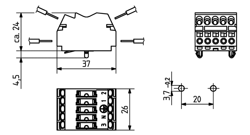 Lösetaste versenkt für obere Anschlüsse (siehe Zeichnung) Lösemöglichkeit für untere Anschlüsse durch Drehen und Ziehen Weitere Beschriftungen auf Anfrage