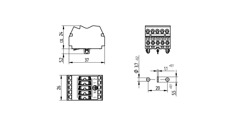 Lösetaste versenkt für obere Anschlüsse (siehe Zeichnung) Lösemöglichkeit für untere Anschlüsse durch Drehen und Ziehen Weitere Beschriftungen auf Anfrage